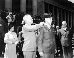He manned a light machinegun on 20 August 1944, near Chambois, France, a key point in the encirclement which created the Falaise Pocket. During an enemy counterattack, his position was menaced by a strong force of tanks and infantry. His fire forced the infantry to withdraw, but an artillery shell knocked out his gun and wounded him in the right thigh. Securing a bazooka, he and another man stalked the tanks and forced them to retire to a wooded section. In the lull which followed, Sgt. Hawk reorganized 2 machinegun squads and, in the face of intense enemy fire, directed the assembly of 1 workable weapon from 2 damaged guns. When another enemy assault developed, he was forced to pull back from the pressure of spearheading armor. Two of our tank destroyers were brought up. Their shots were ineffective because of the terrain until Sgt. Hawk, despite his wound, boldly climbed to an exposed position on a knoll where, unmoved by fusillades from the enemy, he became a human aiming stake for the destroyers. Realizing that his shouted fire directions could not be heard above the noise of battle, he ran back to the destroyers through a concentration of bullets and shrapnel to correct the range. He returned to his exposed position, repeating this performance until 2 of the tanks were knocked out and a third driven off. Still at great risk, he continued to direct the destroyers' fire into the Germans' wooded position until the enemy came out and surrendered. Sgt. Hawk's fearless initiative and heroic conduct, even while suffering from a painful wound, was in large measure responsible for crushing 2 desperate attempts of the enemy to escape from the Falaise Picket and for taking more than 500 prisoners.
